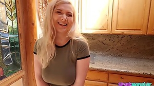 Nice german teen with natural tits blowing cock